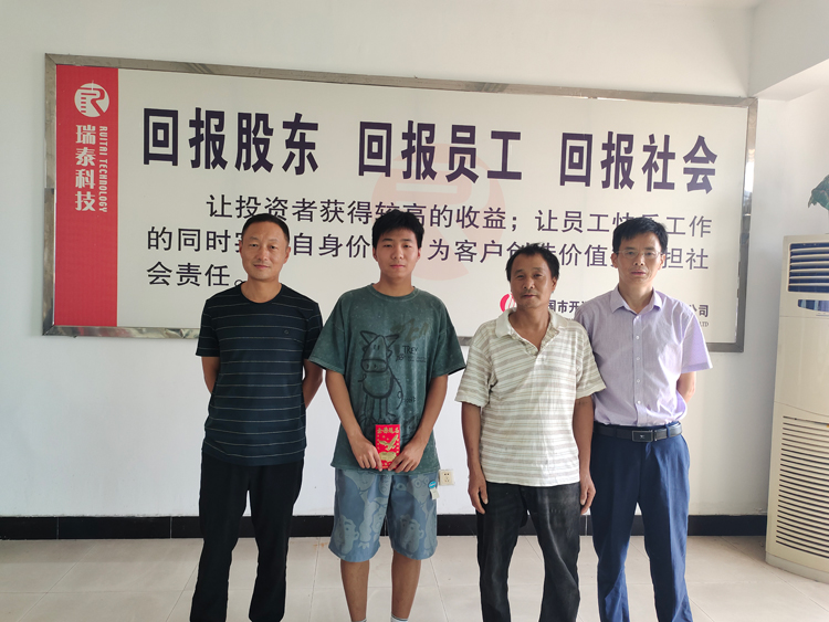 9月1日上午,在開源耐磨公司會議室,汪勝林副總經理和行政辦湯新明主任代表公司黨支部和工會將教育助學金送到了公司困難職工劉發晏子女手上,叮囑他好好學習,學成報效祖國和家鄉。
