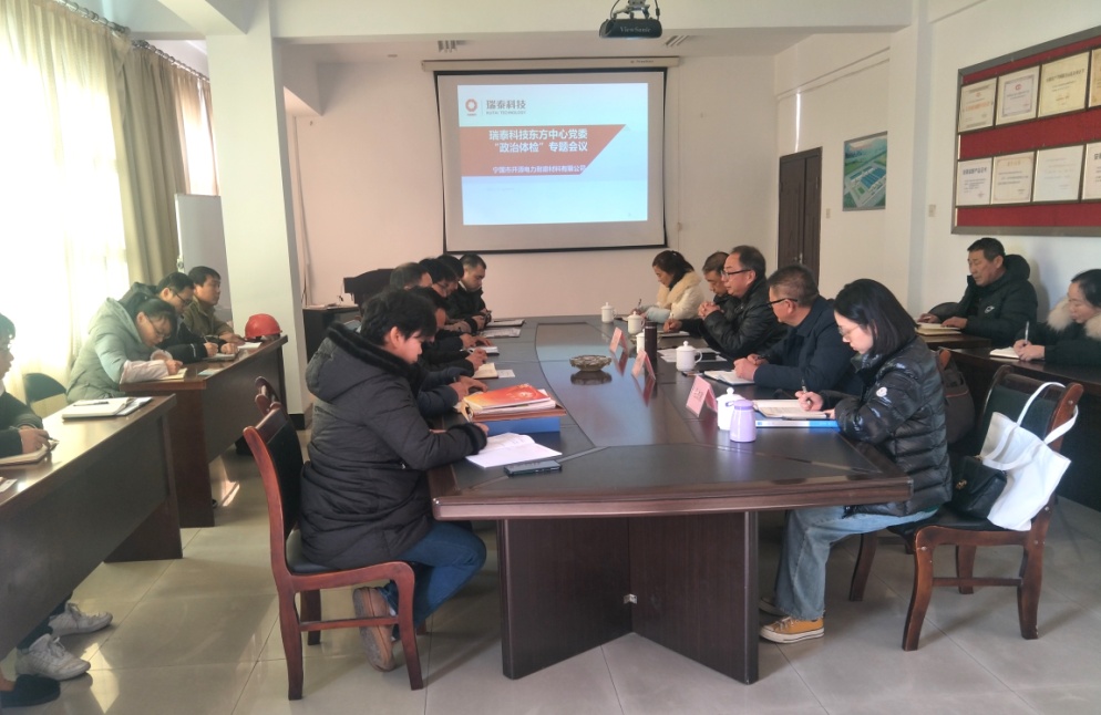 1221日上午,瑞泰科技東方中心黨委副書記、紀委書記張宏亮、財務負責人張玲玲一行到開源耐磨開展2020年度政治體檢財務體檢,開源耐磨公司班子成員、相關部門負責人參加迎檢。